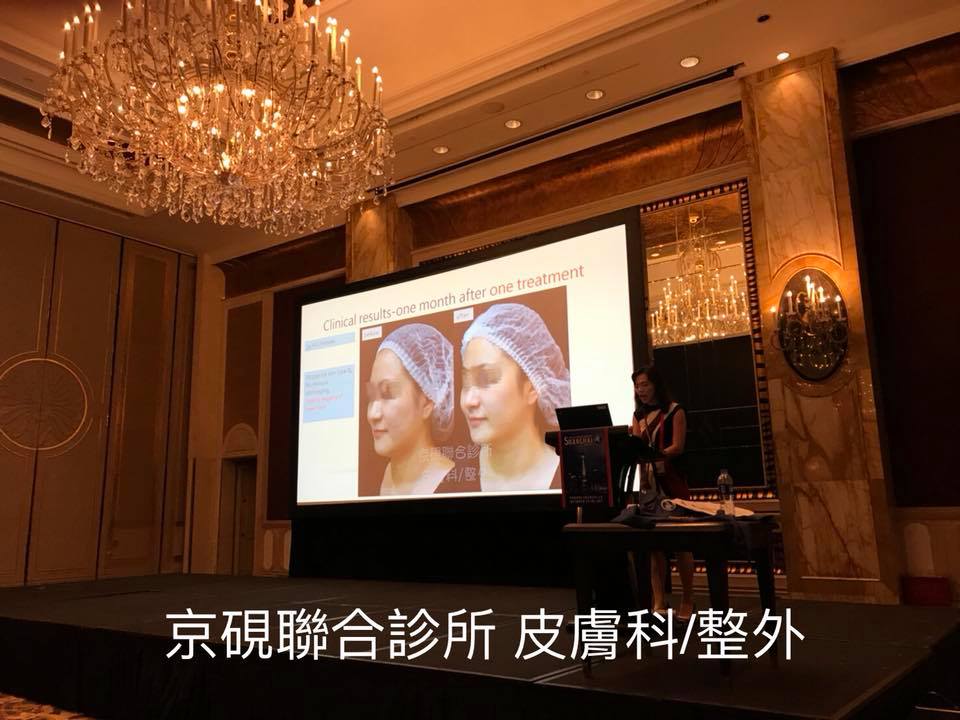 ,與全球醫師分享施打紅電波(ELOS plus)在臉部回春的運用經驗。在座的各國醫師對於紅電波施打之後術前結束後的照片比較,印象十分深刻!尤其是蔡醫師提出獨特的三步驟施打方式,可以使施打的效果更佳!